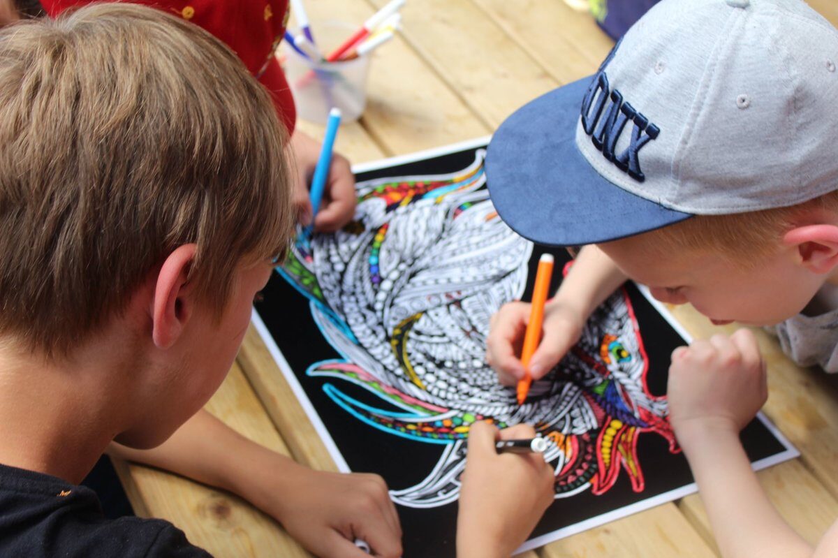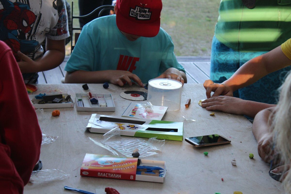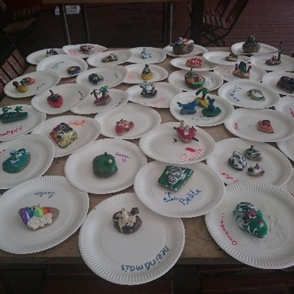 Kādu dienu ciemos ierodas stāstnieki un tēli no pasakām, citu dienu dejas, tiek darinātas kaklarotas, taurenīši, putniņi un pat mākslas darbi uz akmeņiem. Katrs atrod sev tuvāko nodarbi, un radošie darbi kļūst par skaistām piemiņām. Pat lietus nespēj sabojāt noskaņu – zem nojumes rodas jauni draudzības stāsti.
