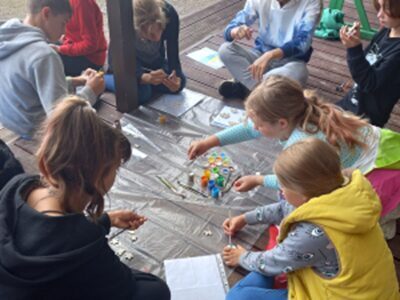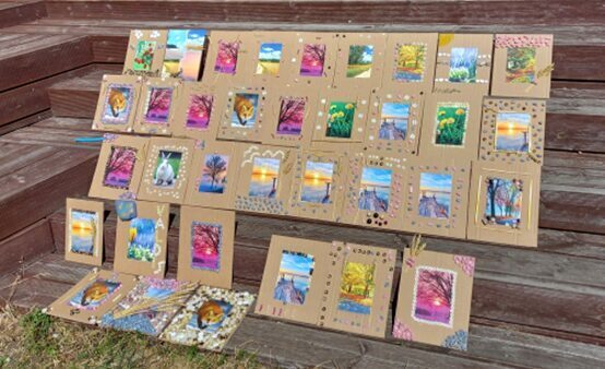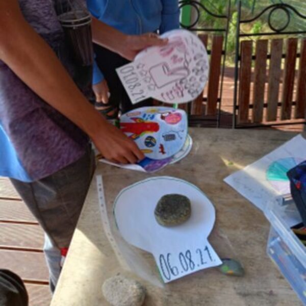 Nodarbībā “Apgleznoti akmentiņi” katrs var izpaust savu radošumu. Kad akmentiņi nomazgāti un iekārtota darba vieta, var sākties krāsu sprādziens, kur netrūkst arī zelta un sudraba krāsas! Radošumam nav robežu, un, lai to visu parādītu arī pārējiem, tiek izveidota skaista izstāde. Te atrodamas dažāda lieluma bizbizmārītes, dzīvnieki, nezināmi lidojoši objekti, skaisti dabas skati un vēl daudz dažādi brīnumaini tēli.