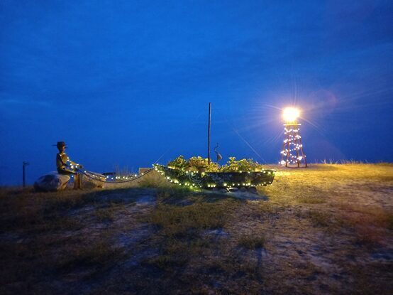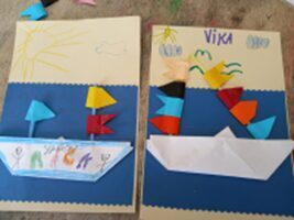 Nometne pie jūras sniedz daudz prieka. Gan jūrā, gan nodarbībās. Kāds atceras, kāds no jauna mācās locīt papīra kuģīšus. Un kā gan kuģītis bez jūras, burām un karogiem - dalībnieki līmē un zīmē viļņus, sauli, zivis, enkurus, izdomā savam kuģim vārdu. Uz salmiņiem, kas noder kā kuģa masti, katrs var savērt dažādu krāsu karodziņus – arī melno pirātu karogu. Nodarbībā „Krāsainās māla figūras” nepieciešams spēks un radošums. Katrs izrullē savu baltā māla masas gabaliņu un veido figūras – kuģus, lidmašīnas, sirsniņas, ziedus, arī telpiskus cilvēciņus. Atpūtas laikā var lidināt plastmasas lidojošos šķīvīšus, zīmēt labirintus un stāstus ar krītiņiem uz asfalta, pastaigāties gar jūru vai vienkārši atpūsties svaigā gaisā, klausoties jūras un meža skaņās.